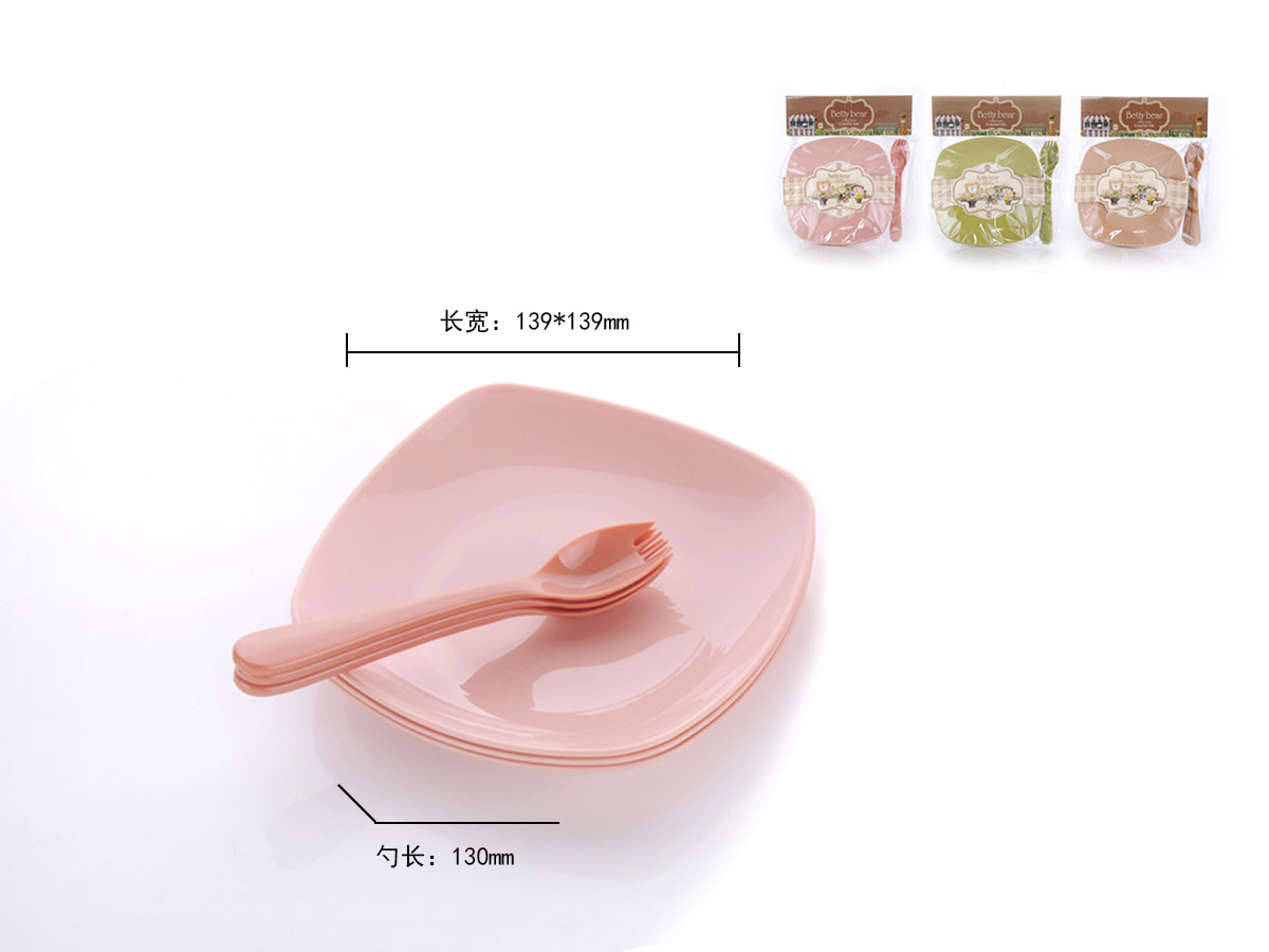 得力熊歐式小號簡約正方餐盤(4pcs)( 配4pcs叉匙)